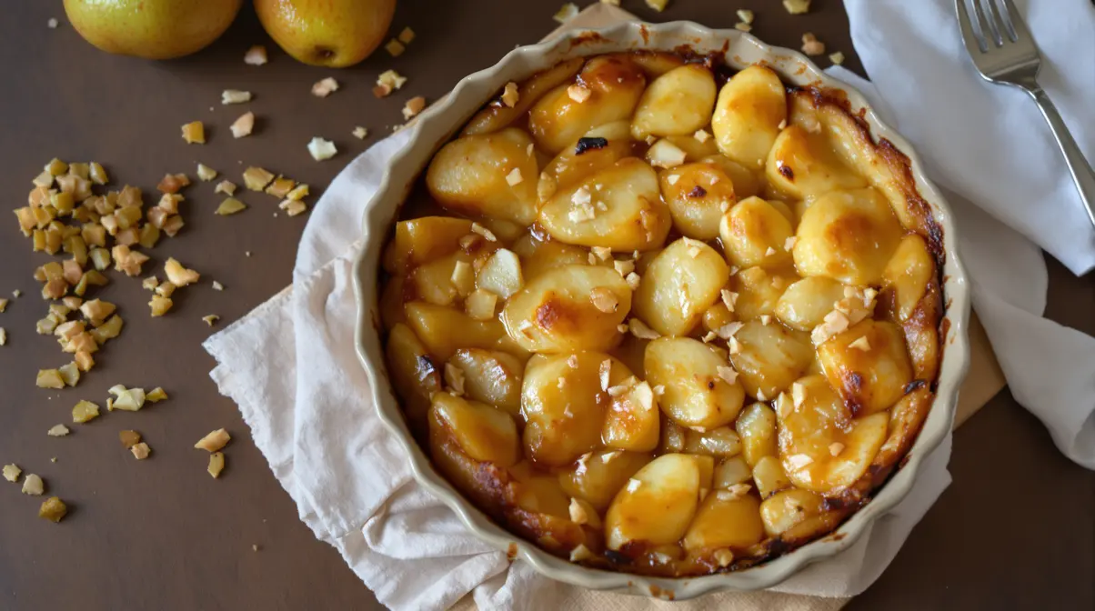 Il y a des desserts qui mettent tout le monde d’accord sans discussion. Ce clafoutis express aux poires et noisettes en fait partie. Quelques gestes simples, une odeur de fruit chaud qui envahit la maison, et soudain le dîner d’hiver prend une autre dimension.